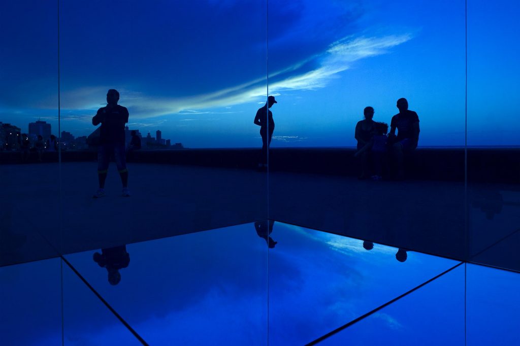 Esta instalación interactiva con forma de cubo permite que el público se introduzca dentro y observe el espacio a través de los cristales azules. Este cambio en la percepción de nuestro entorno permite explorar los límites de nuestra percepción y la experiencia producida por la relación con nuevas formas que distorsionan la realidad. El azul es un color destacado en la trayectoria de la artista, que habla sobre la forma de compartir su visión del mundo.